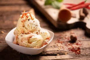 Không chỉ kem dừa gợi cảm giác ngọt béo tự nhiên, kem sầu riêng là lựa chọn cho những ai yêu hương thơm đặc trưng, thì kem ớt xuất hiện như một làn gió mới – kết hợp giữa sự mát lạnh tan ngay trong miệng và vị cay nồng lan tỏa dần dần. Công thức cơ bản của kem ớt không quá cầu kỳ: